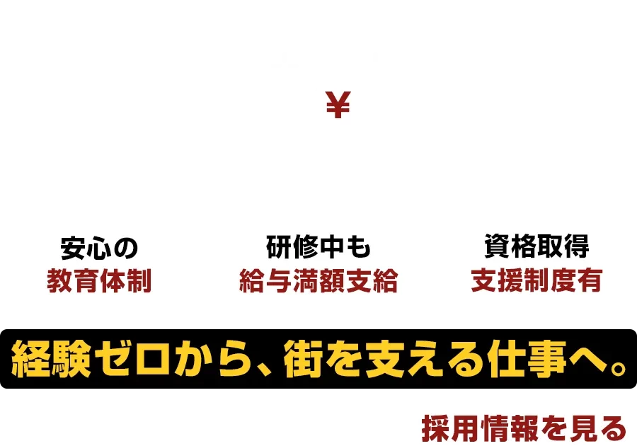 屋外での仕事なので夏場・冬場は大変ですが、休憩時間が多いのでご安心を。一生モノの技術を身につけ、一緒にプロを目指しましょう!